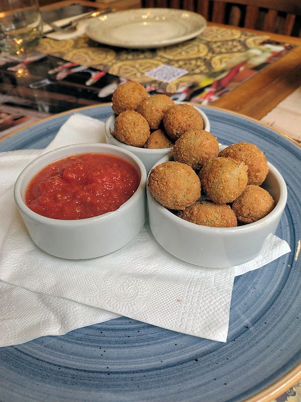 And, well, I’m here, so a cannolo is in order. Offered with just ricotta filling and options for either plain, with pistachio, or with chocolate. The shell a bit thick and cookie-like, and not crisp. The ricotta filling just the right amount of sweet and tang, and almost as much extra beneath the cannolo as inside it. The pistachios are just scattered around the plate, which seems a weird choice - I guess it makes for a plating aesthetic. I’d rather the ends were well coated in pistachio, but it works. Not my favorite, just based on the texture of the shell. 5000 pesos/us$4.50. I was also a tad surprised that they don’t serve coffee - first, I’m not sure I’ve ever been to an Italian restaurant that didn’t, and second, they have signs up for Lavazza - you can even see one over the door in the first picture. The waitress guessed that maybe sometime in the past they used to serve coffee, but they don’t now.