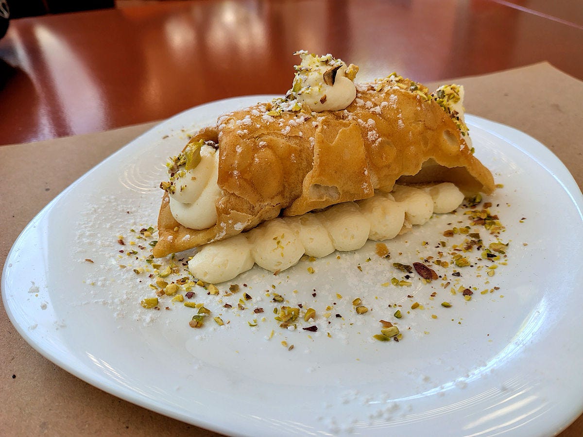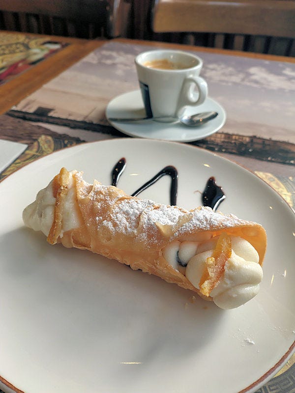 In for a centavo, in for a peso. They had cannoli on the menu, and a choice of fillings. Of course I went for the ricotta. Light, delicate, crisp shell, golden brown. The filling a rich, lightly citrusy ricotta cream, studded with bits of chocolate and orange peel. Not filled well - there’s like a solid inch in the middle with no filling. 9900 pesos/us$8.50, espresso included as a combination.