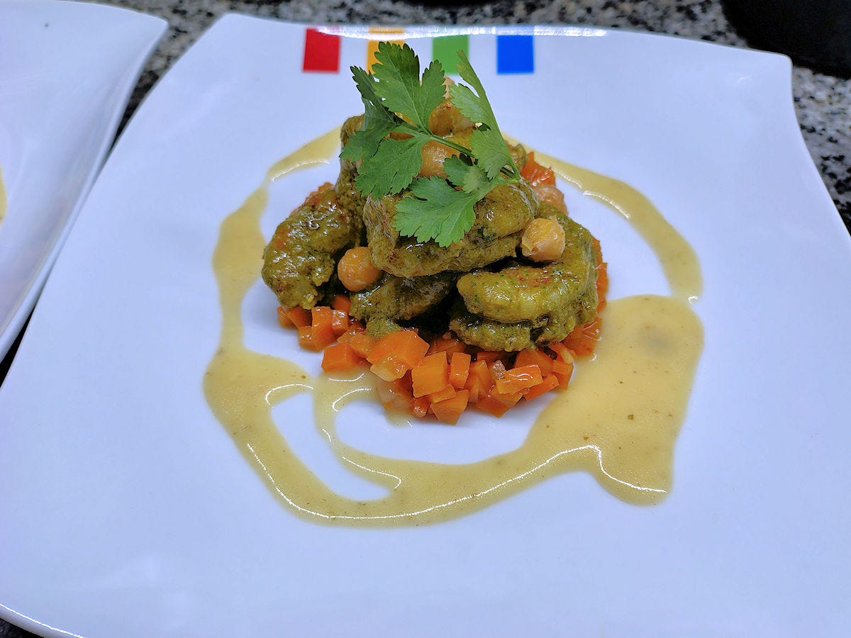 And, let’s round this up with another one that’s been in the works for awhile. The original dish was one of prawns sautéed with chermoula, a North African herb and spice mixture, and some preserved lemons. Here, I marinated the prawns in the chermoula (ours is a blend of cilantro, garlic, hot paprika, cumin, ginger, chili, saffron, lemon, oil, and salt); then quickly just heated through in the sauce, just enough to barely set the prawns. Chilled those. The base, a fondue of finely diced carrots cooked in prawn stock, garlic, , chili, marsala, and honey; also chilled. And finally, a lemon curd spiked up with what I would use to make preserved lemons - cinnamon, bay leaf, thyme, parsley, coriander seed, white pepper, and salt. Garnished with some fried chickpeas and cilantro leaves. That lemon curd is a keeper. I’ve been using it on… everything.