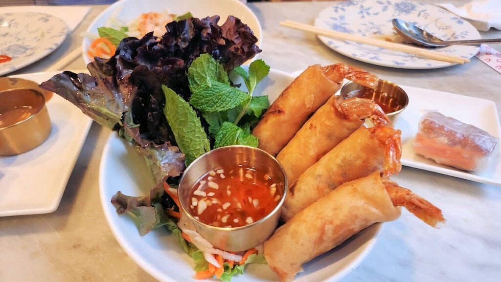 And, an evening out with the inimitable Marc and Sookie, long time friends, and among the few who've made the trip down to visit me in Buenos Aires. We settled on Vietnamese food at East Village dive Madame Vo, 212 E. 10th Street, where we dug into an array of rolls, crepes, and braised things. Tough to pick between the fried prawn spring-rolls and the braised pork summer rolls. Oh, just get both.