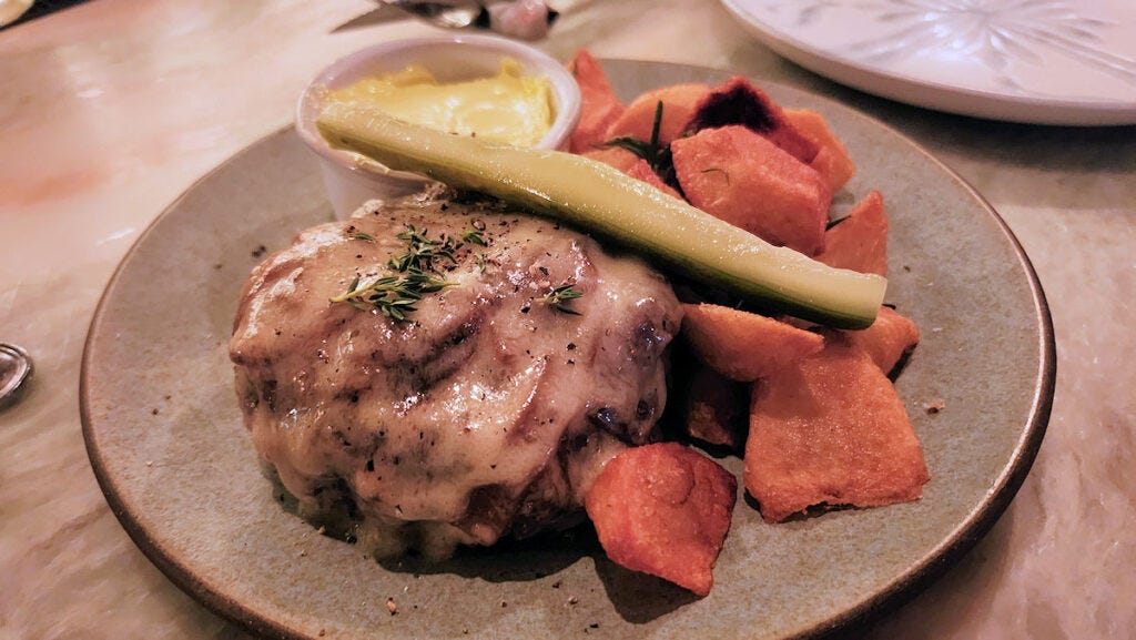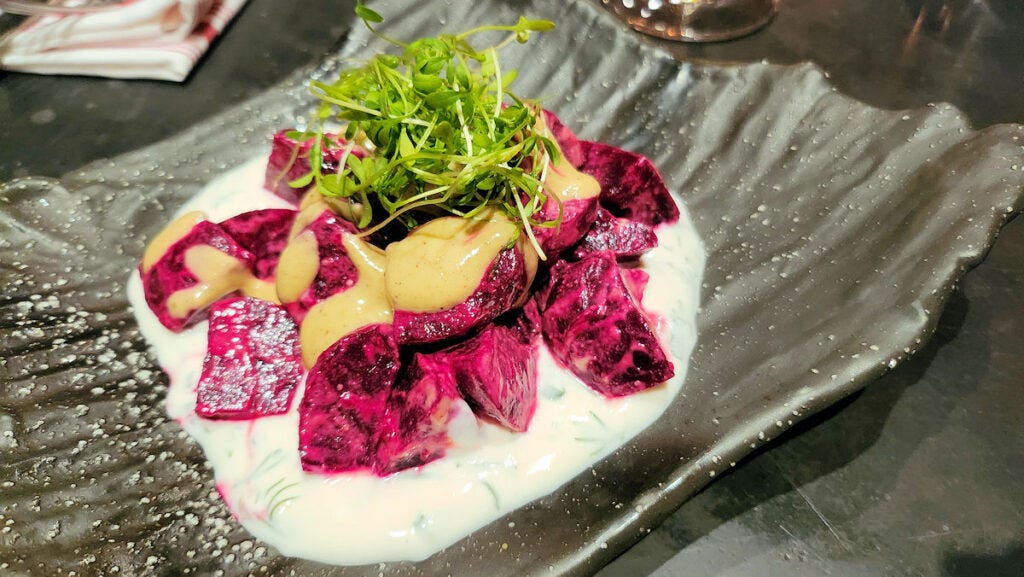 The winner was this stunning beet salad with an herb yogurt and pistachio puree. I could have eaten another whole salad (but went for crab croquettes and a half dozen oysters).