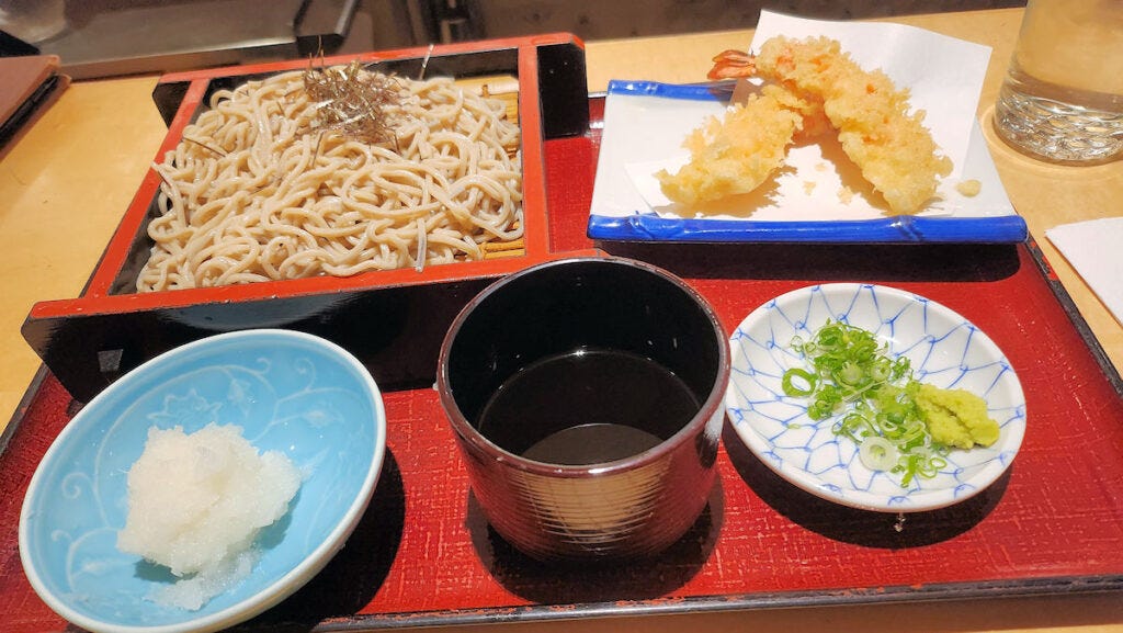 When I lived in the East Village, now going on twenty years ago (time flies, thank you for accompanying me on this journey!), I was a regular at the sake bar and soba noodle counter at Ise, 63 Cooper Square. The ten zaru soba, chilled light buckwheat noodles, dipping sauce, extra grated radish, and two tempura prawns was always my favorite, and it's as good as it ever was. Unfortunately, you have little time left to get there, as the owner, now 81 years old, is retiring back to Japan later this month, and the place is closing up.