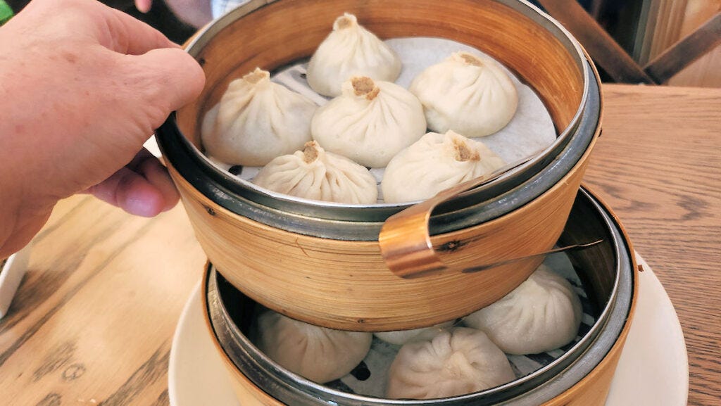 If you love soup dumplings, how could you not love a place whose sole reason for existing is a dozen varieties of them? If you don't love soup dumplings, please just quietly retire to a corner over there and not a word out of you, thank you very much. Steam, 470 6th Ave, West Village, is the place to wander into and indulge in these delicately made flavor bombs. Personal favorite, the chicken and ginseng ones. My friend Steve, who came in from some northern town, and from whom I used to buy excellent Italian wines, didn't disagree.