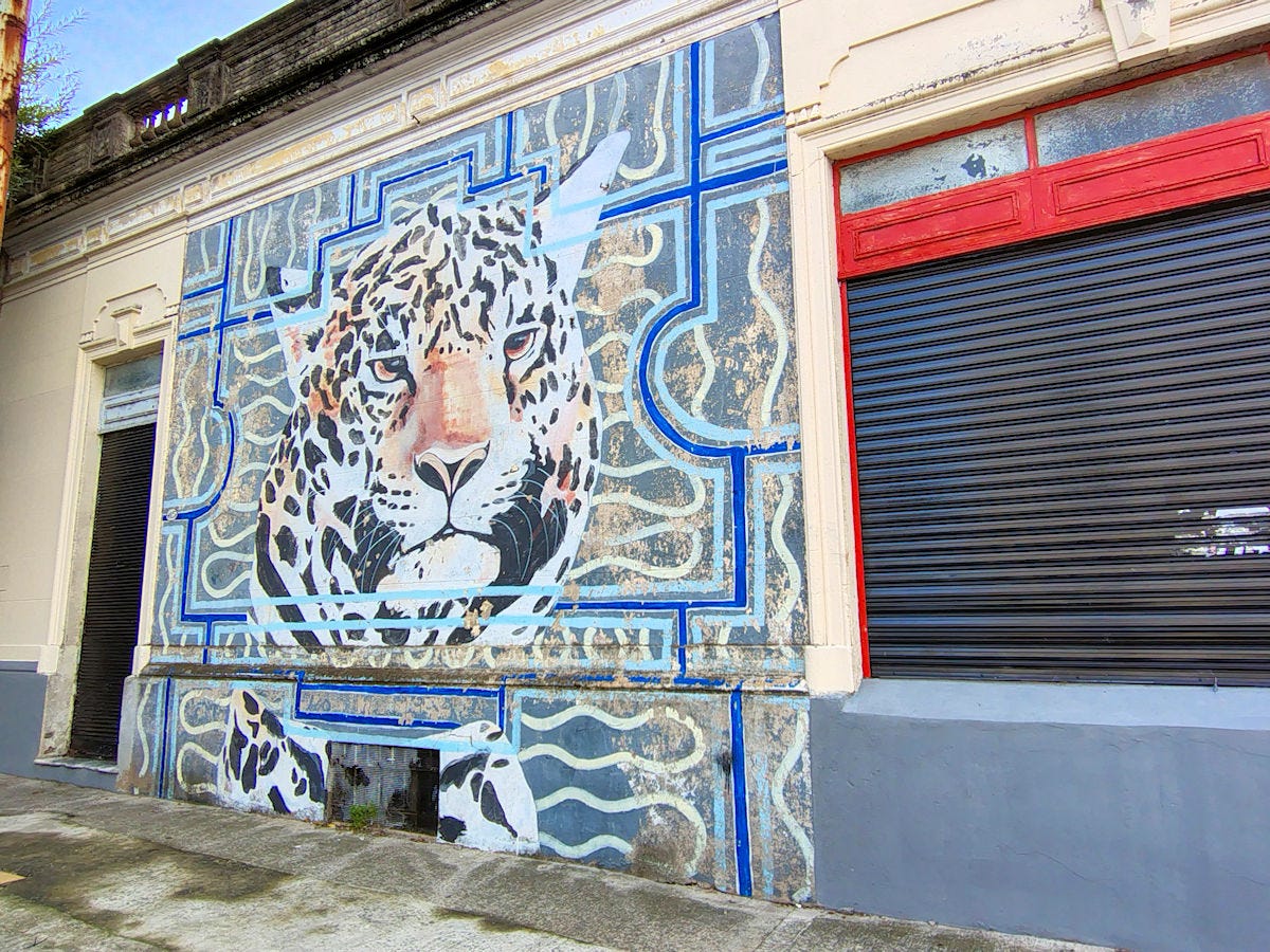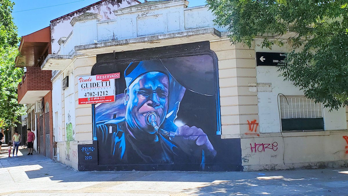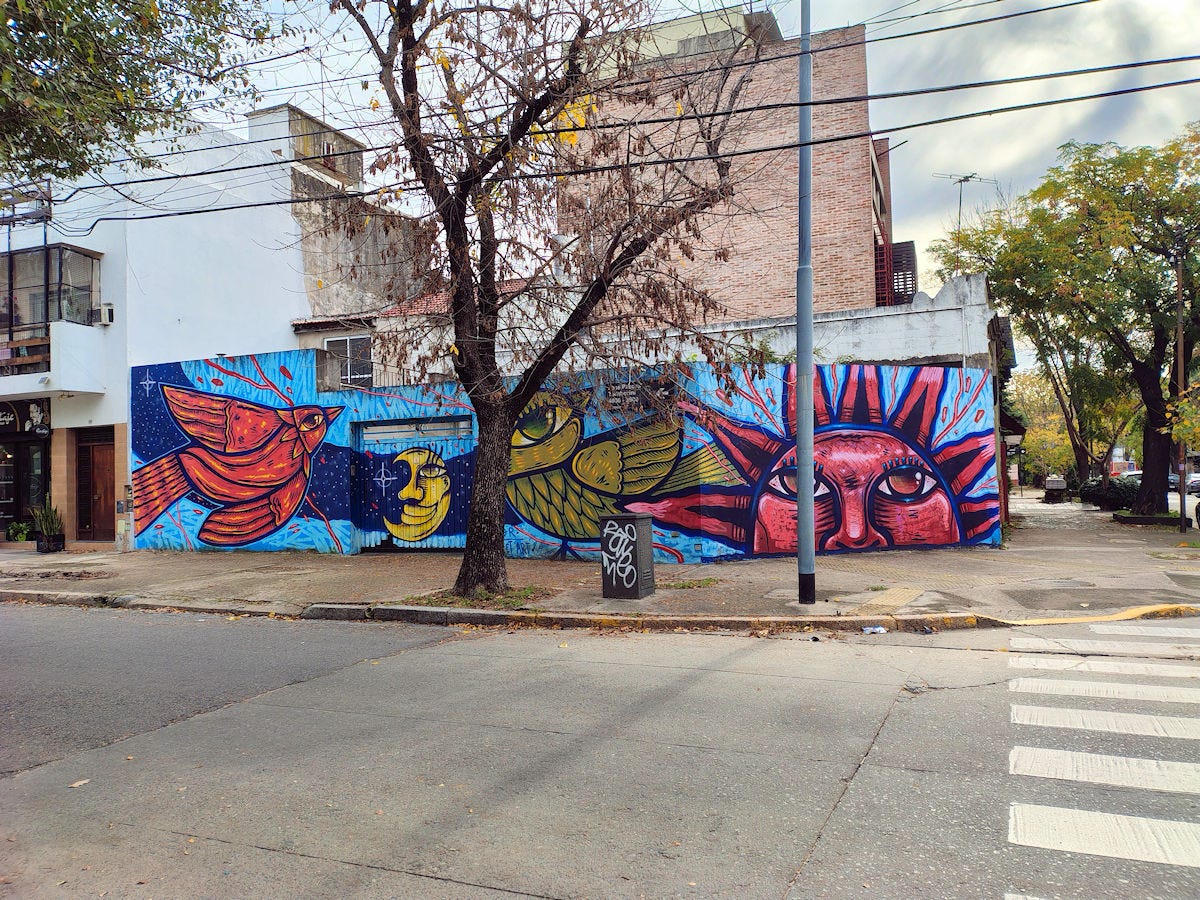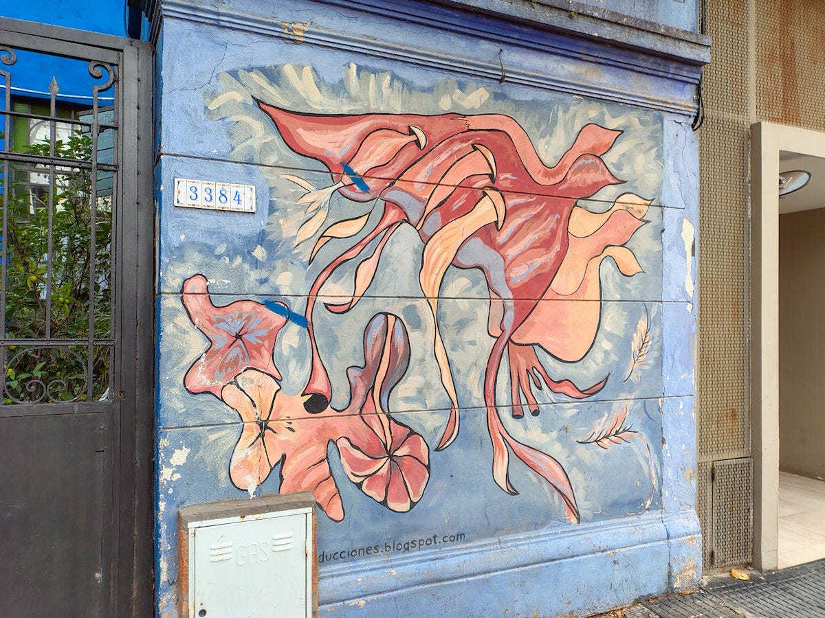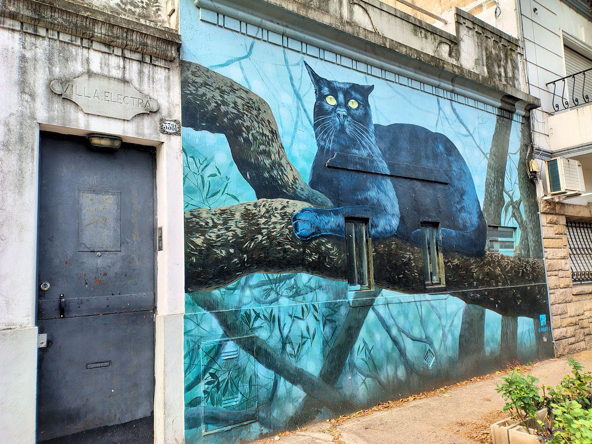 Recently, I was talking to someone who noted that there’s an entire culture of people hiring one of about a dozen local and international street artists, to paint the façades of their homes, and various other neighborhood buildings, with a concentration along one street, Estomba. So it was off to take a walk along that street, as well as a few paces off to one side or another to visit the more noted examples. I found that several of them, despite being touted on local sites, have vanished, as buildings have been sold and/or refurbished - including a couple that I’d seen on that previous walk.