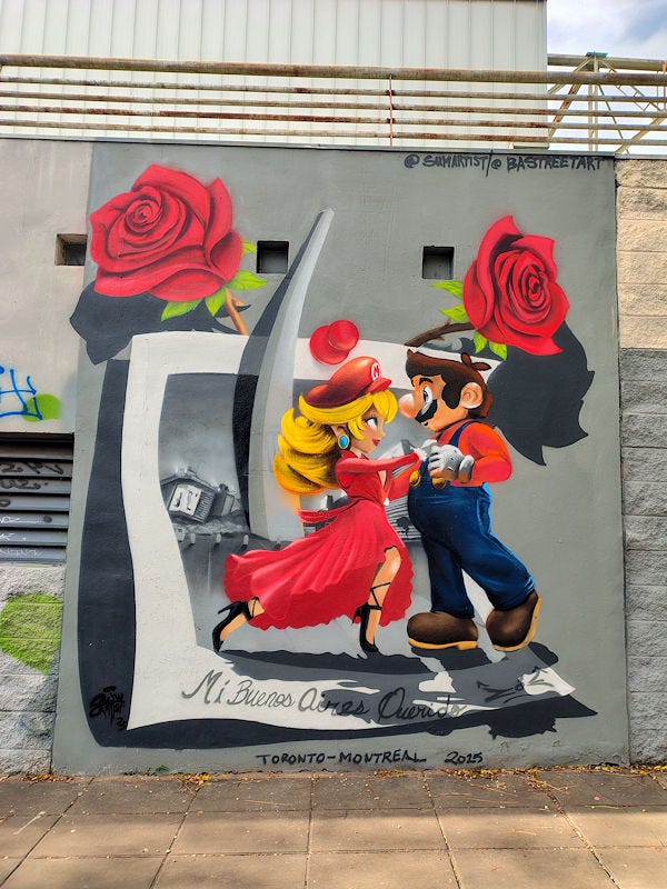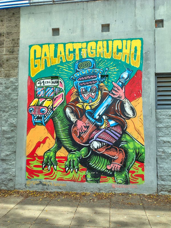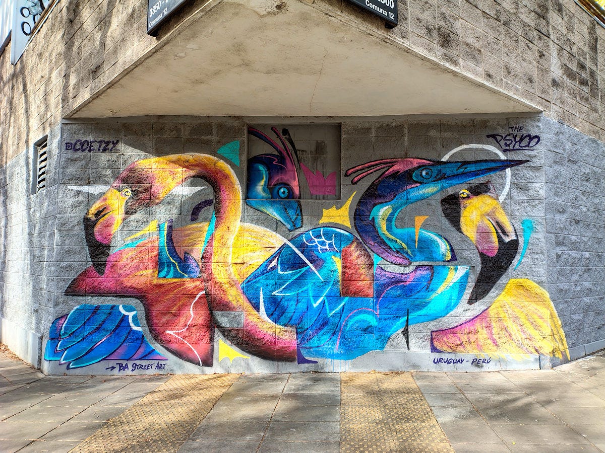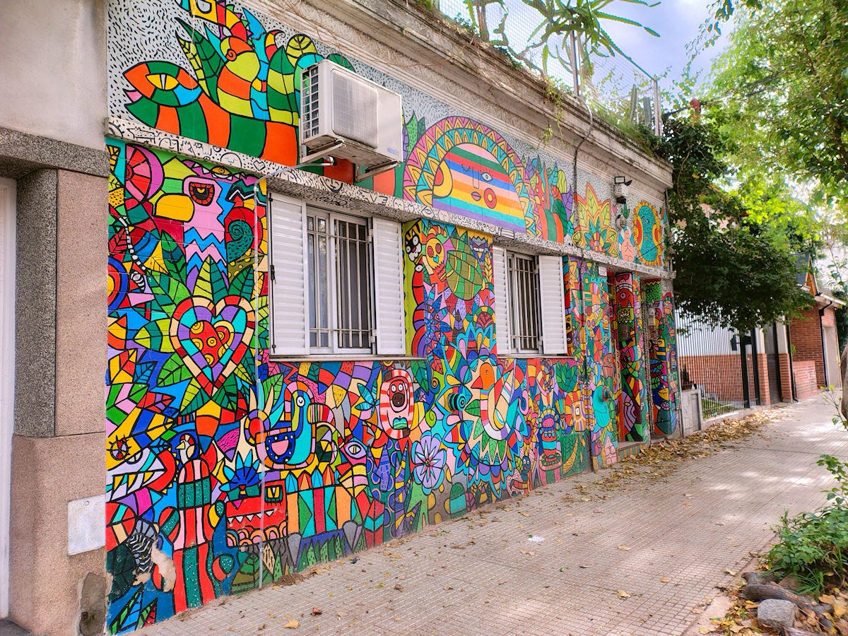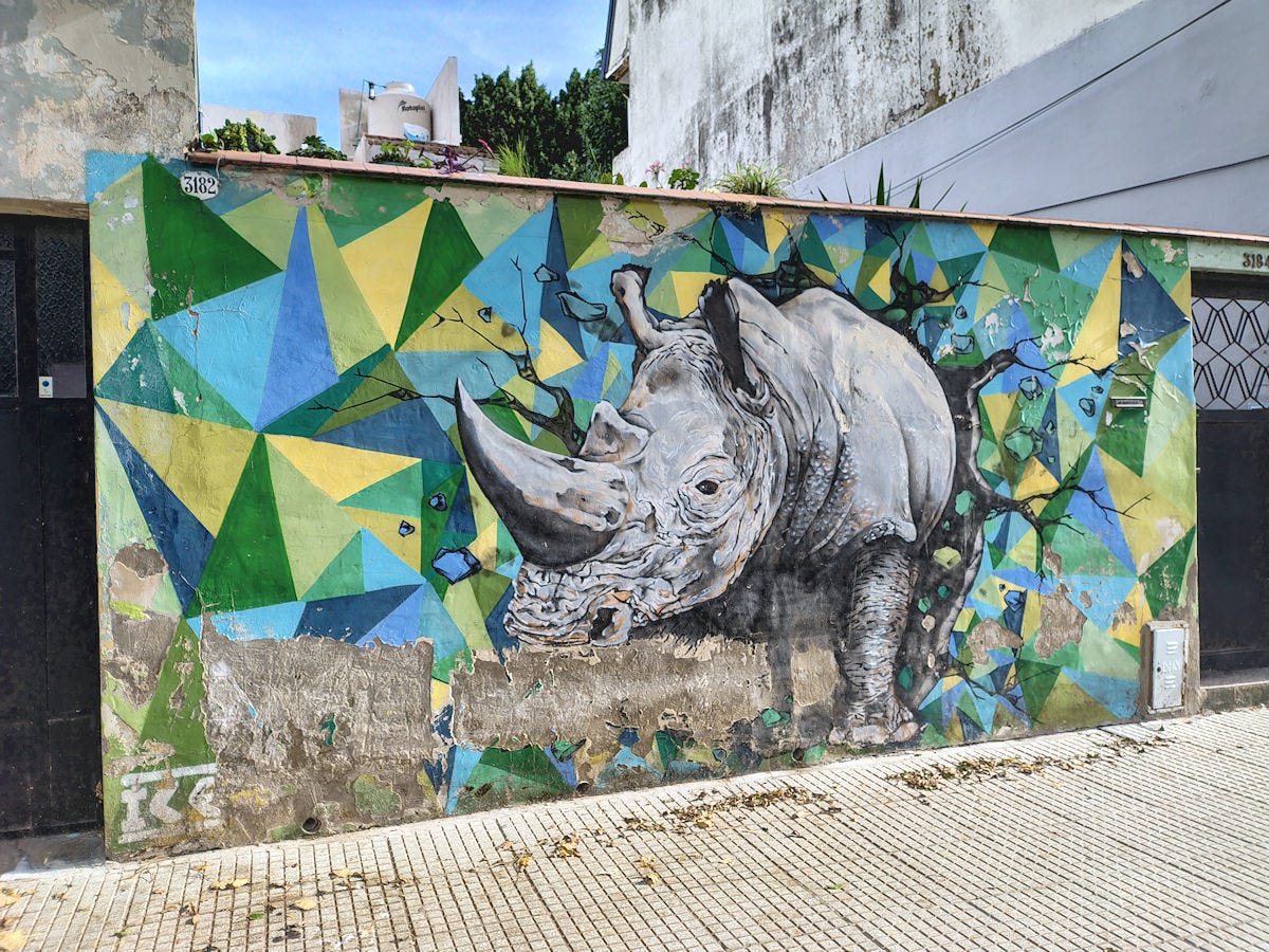 Recently, I was talking to someone who noted that there’s an entire culture of people hiring one of about a dozen local and international street artists, to paint the façades of their homes, and various other neighborhood buildings, with a concentration along one street, Estomba. So it was off to take a walk along that street, as well as a few paces off to one side or another to visit the more noted examples. I found that several of them, despite being touted on local sites, have vanished, as buildings have been sold and/or refurbished - including a couple that I’d seen on that previous walk.
