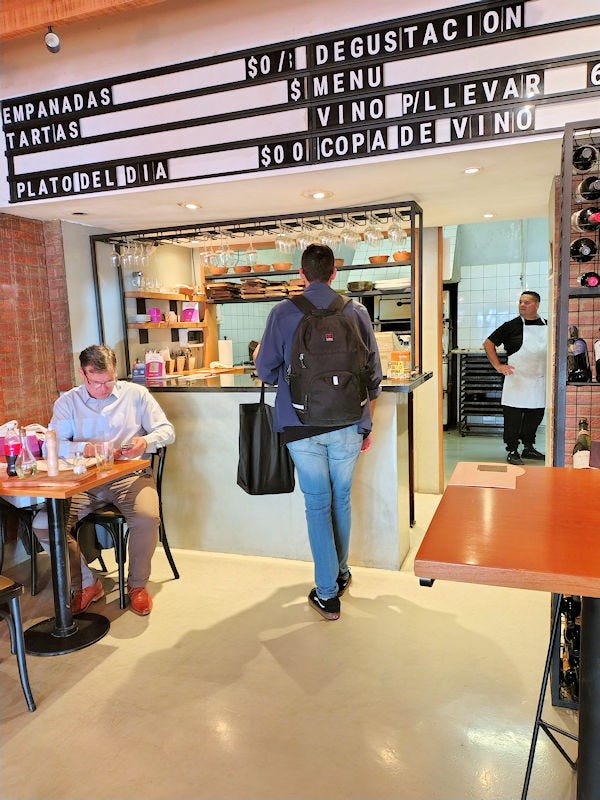 Another idea that falls short, that not as egregiously. El Mayoral, just a block away, at Paraná 926, offers up what sounds like a brilliant combination. Wine and empanadas. It feels a bit fast food-ish, but hey, it’s empanadas. And the spicy beef empanada, though not at all spicy, is pretty decent. The issue I have is the wine. They have a decent selection by the bottle, but everyone I saw who came in came in solo, or in a couple, and wanted just an empanada or two and a glass of wine. They weren’t looking to split an entire bottle, and neither was I. And despite the menu’s offer of “consult with us for the list of wines by the glass”, it turns out they only offer one wine by the glass, an off-dry Malbec-Cabernet that was barely above mediocre. Did they used to offer more of a selection? Another pass for me.