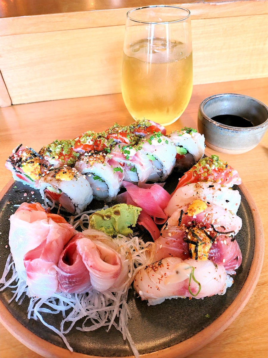Here, the 20-piece omakase selection. Five different fish repeated four different ways - sashimi, nigiri, and two different maki. All fresh, moderately creative, and quite tasty. For 20 pieces, 50000 pesos is about on target with many other sushi bars in town, and having a quintet of different fish made it even better. I’ll happily return for more.
