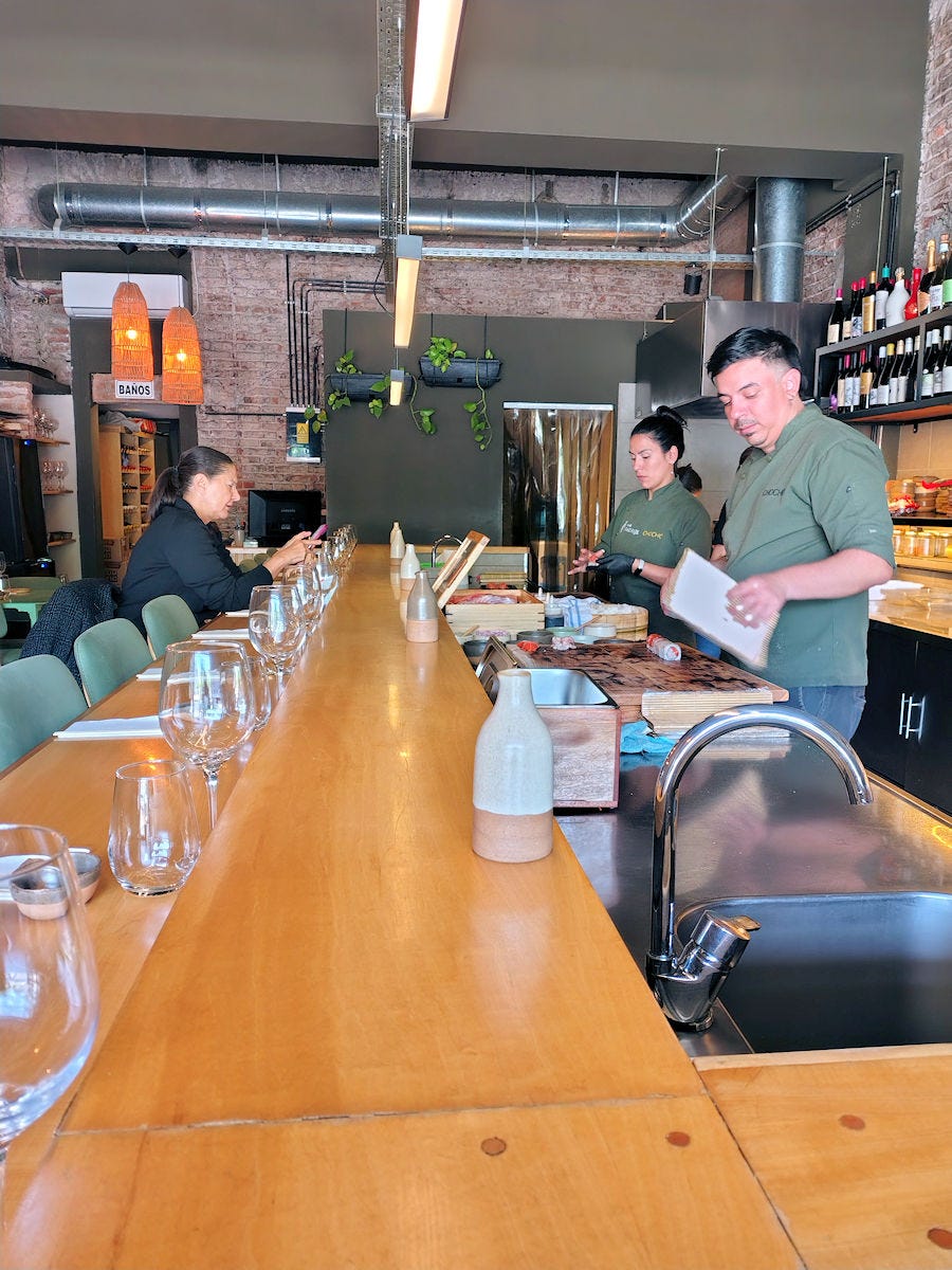 Chocho Sushi de Autor, Carlos Pellegrini 1179, Retiro - A roughly dozen seat sushi bar with a few tables off to the side, offering up a daytime omakase menu (several options, plus a la carte). Interesting location being on the service road side of the whopping Av. 9 de Julio. Waitstaff are friendly. The folk behind the sushi bar don’t seem to interact much with customers. After making the sushi, and placing it in front of you, they step back and one of the waitresses steps in and explains what you’ve got. I can see that, perhaps, in the middle of a really busy rush, where the sushi chefs need to move on quickly to the next platter, but, with a whole two of us in the restaurant, they could possibly provide a little more interaction than a nod.