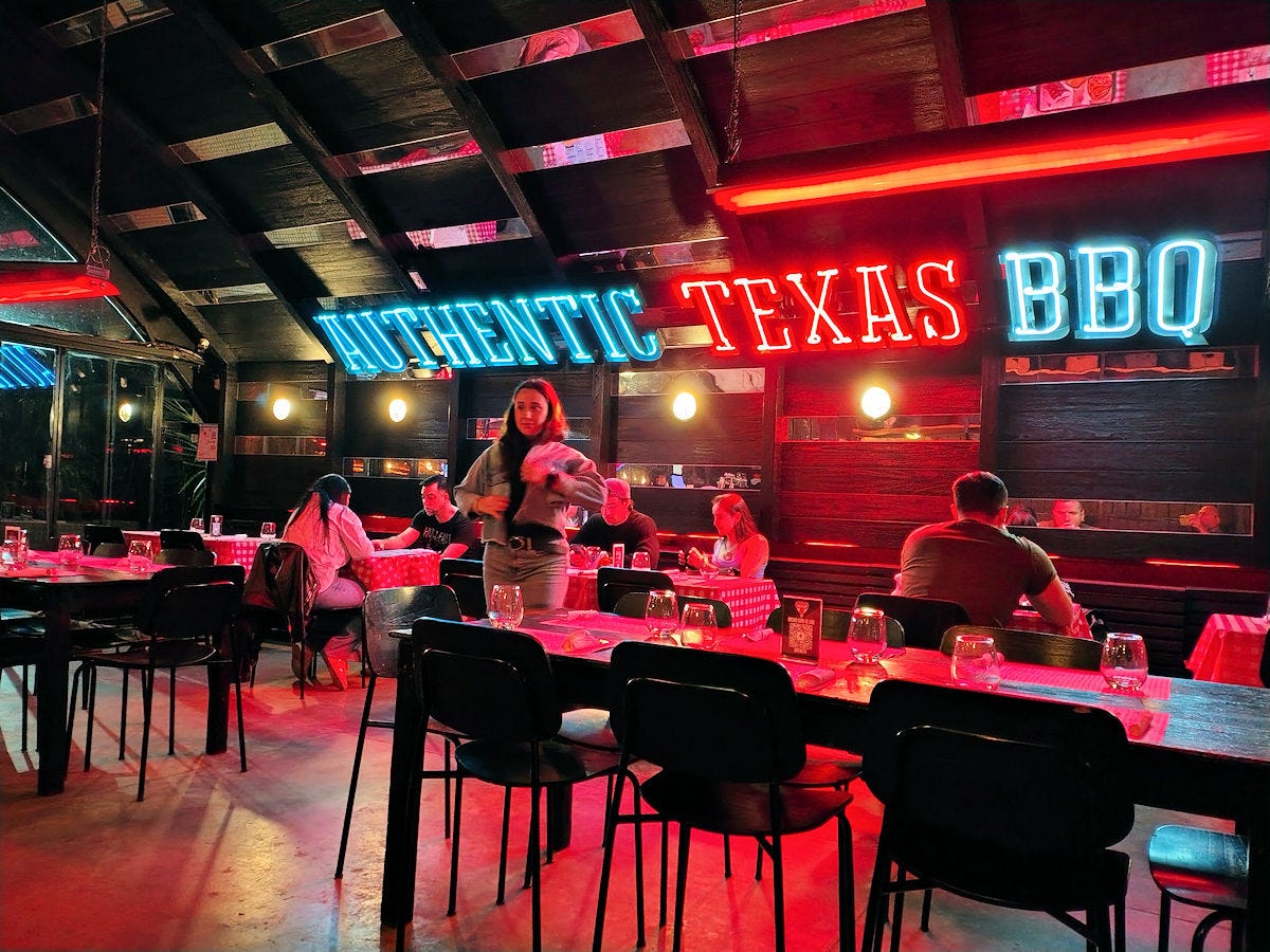 We were out for La Noche de los Museos, the annual museum fest that is one of my favorite events of the year in Buenos Aires. We’d just spent an hour or so in the Sivori museum and feeling a trifle hungry, walked the strip of the Paseo de la Infanta, a mélange of restaurants under the train trestle. Over the years since it opened, it’s been a mixed bag of good and bad. We weren’t expecting fireworks going for “Authentic Texas BBQ” at Ribs al Rio, archway #6, but they have a decent reputation for their smoked meats.