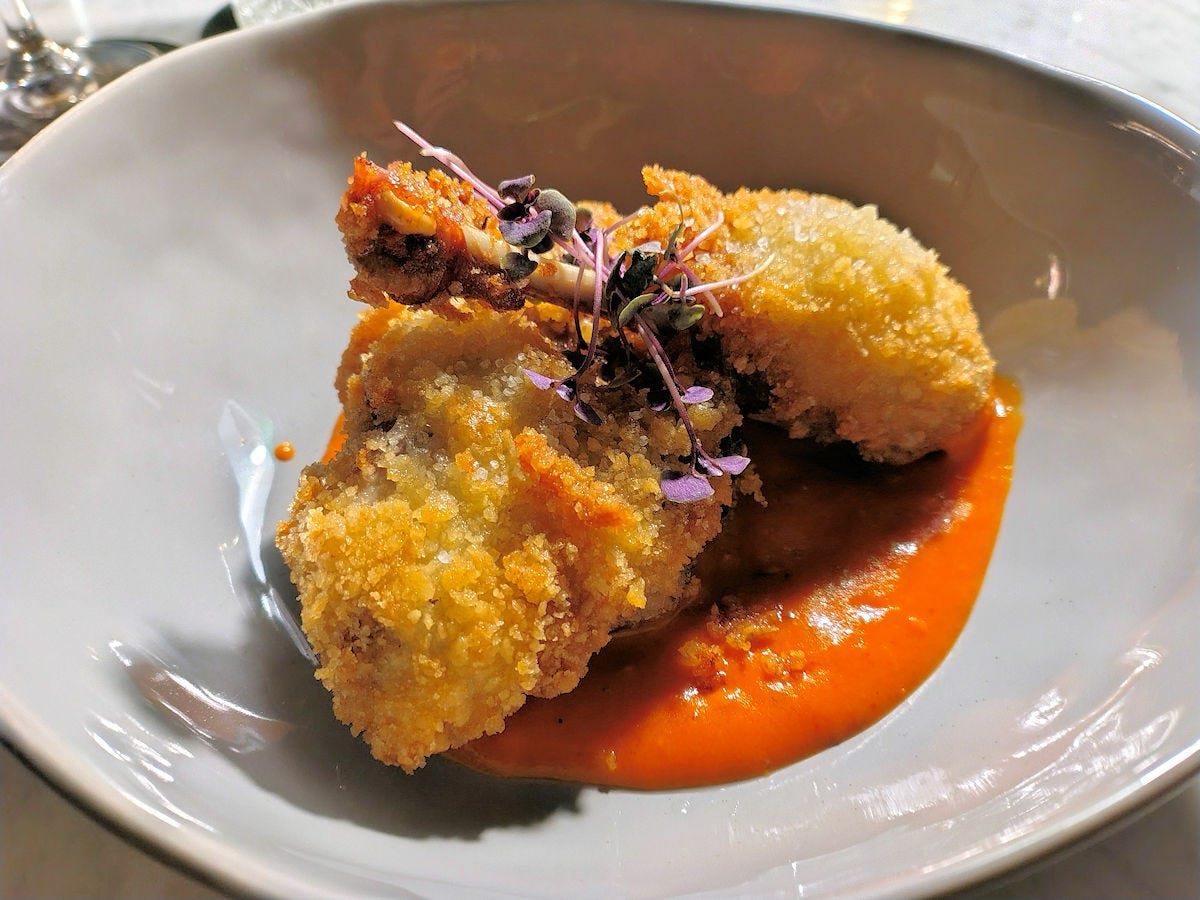 And then, I sat, and waited. As things verged on half an hour since the paté plate had been cleared, I flagged down waiter and bartender and asked about my second plate. It immediately became clear that they’d forgotten to enter it into the computer, and a rush back to the kitchen resulted in a 10-15 minute window to receive it. I was relaxing and enjoying reading a book at the bar, so, decided to wait for it.