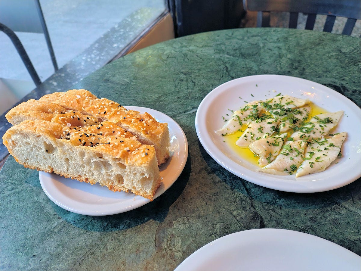 An excellent duck paté, with little pickled and crunchy bits, and really just one of the better patés I’ve had here. It doesn’t come with any conveyance, so you have to order the bread plate on the side, which comes with way too much bread and focaccia for one person. At least it’s not expensive. Respectively, 9500 and 3500 pesos.