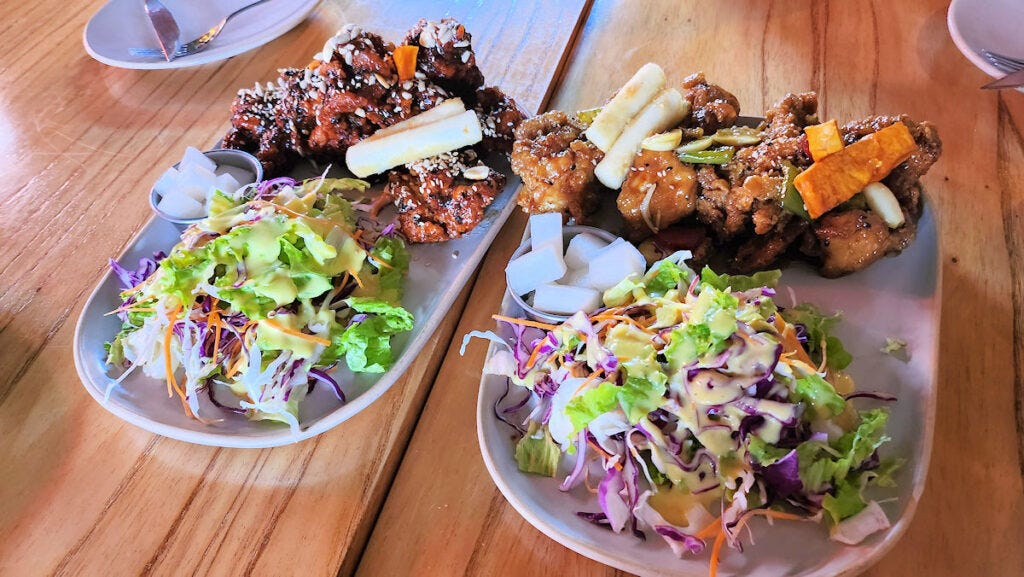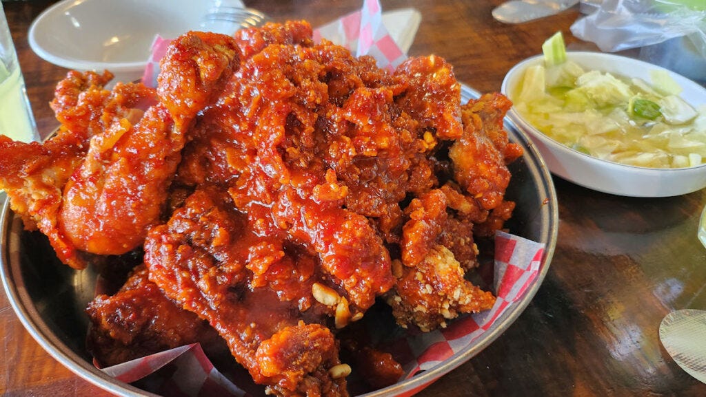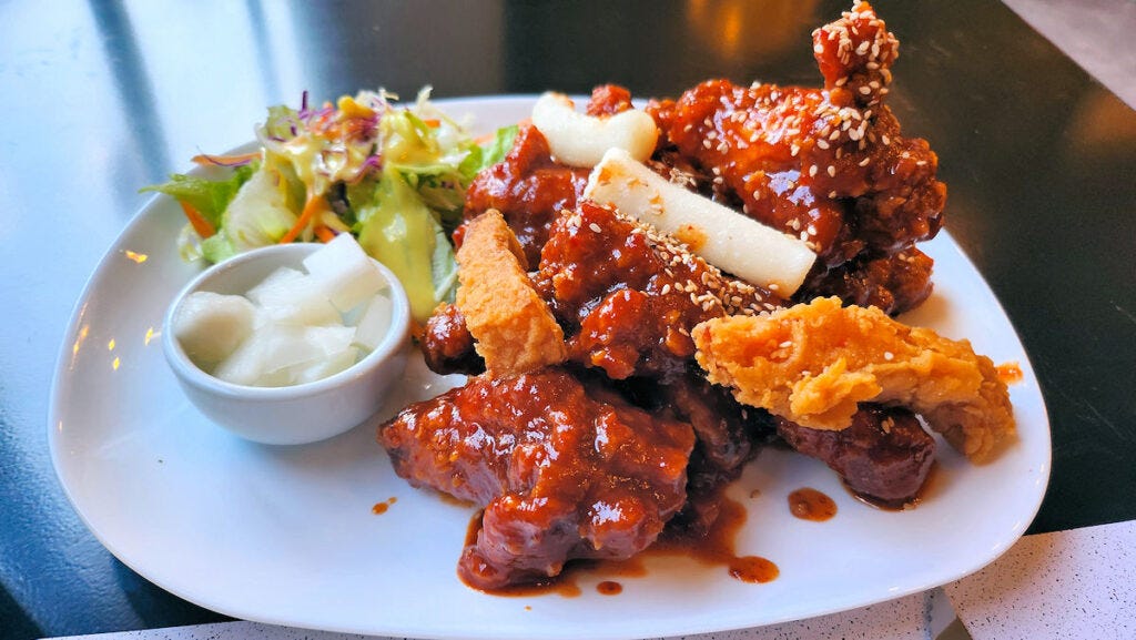 I'm going to pass on re-reviewing Kikiriki, which offers up what amount to platters of chicken nuggets with dipping sauces, only some of which are Korean, and with the exception of a Monday through Friday lunch only special, doesn't offer them in individual portions - 0nly platters for two to six people.