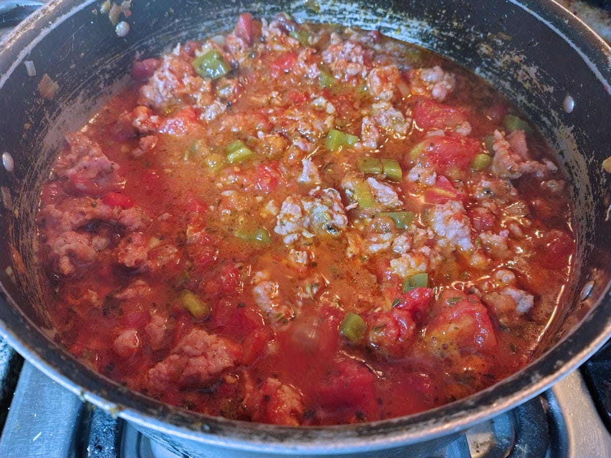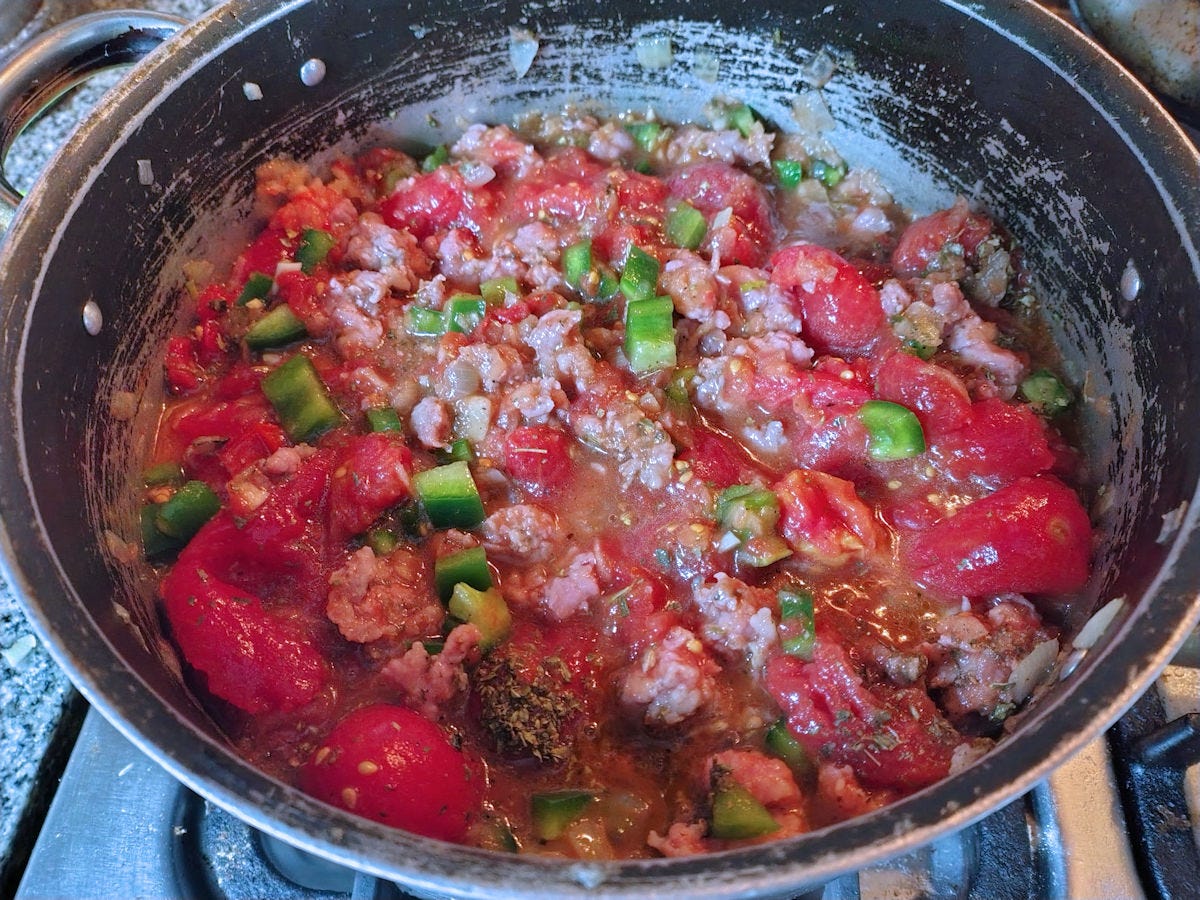Dan, I make mine with beef shank, Boston butt pork steaks and sausage, with cans of San Marzano tomatoes then simmered for hours.