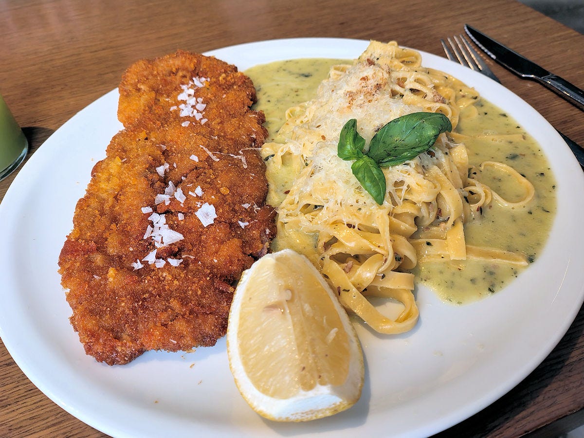 And, the milanesa. Weirdly salted - the meat itself, and the crust, seemed to have no seasoning at all. Instead, a couple of big pinches of flaky salt atop. It’s just not the same as the salt being embedded into the meat and its breadcrumb case. And the pockets of flaky salt were a little over the top, and I pretty much just tapped them off of the milanesa and then sprinkled some regular table salt and pepper over it. The accompanying “spaghetti” which was actually tagliatelle, has just sort of been plopped on top of a rather liquid basil sauce. No clinging to the noodles, it just sort of sat there. And, desperately in need of salt and pepper. My least favorite dish of all of the above, and one with so much potential with some really minor tweaks (seasoning, and I’m surprised that a chef and kitchen of this caliber doesn’t, apparently, know how to toss pasta with sauce and cooking water to get it to cling). 36000 pesos.