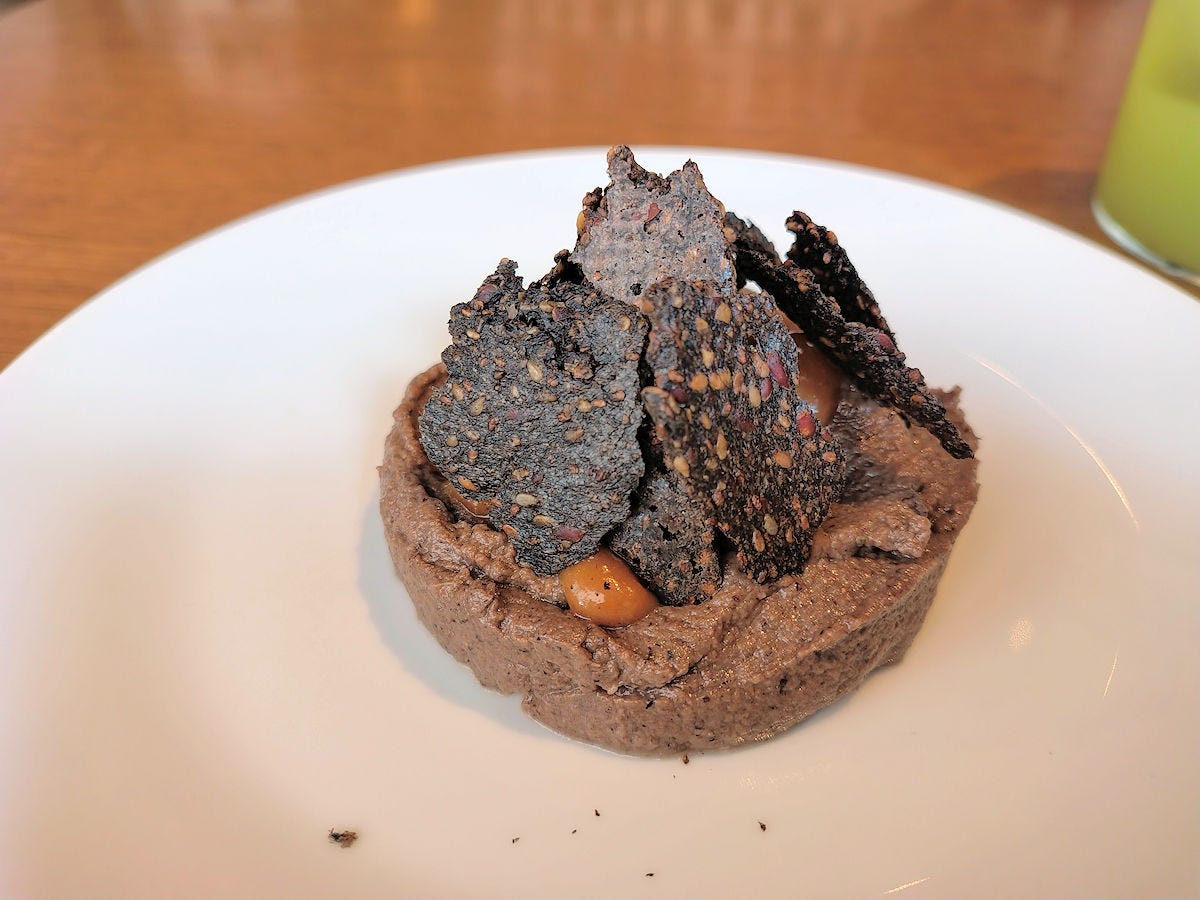 I was less enamored of the mushroom pâté. Beyond just sort of looking scatological, it’s kind of bland. It needs a good hit of salt, maybe a little pepper. And the linseed crackers need to be… cracker-y - i.e., crunchy, rather than the texture of fruit leather. It was all just okay. 15000 pesos.