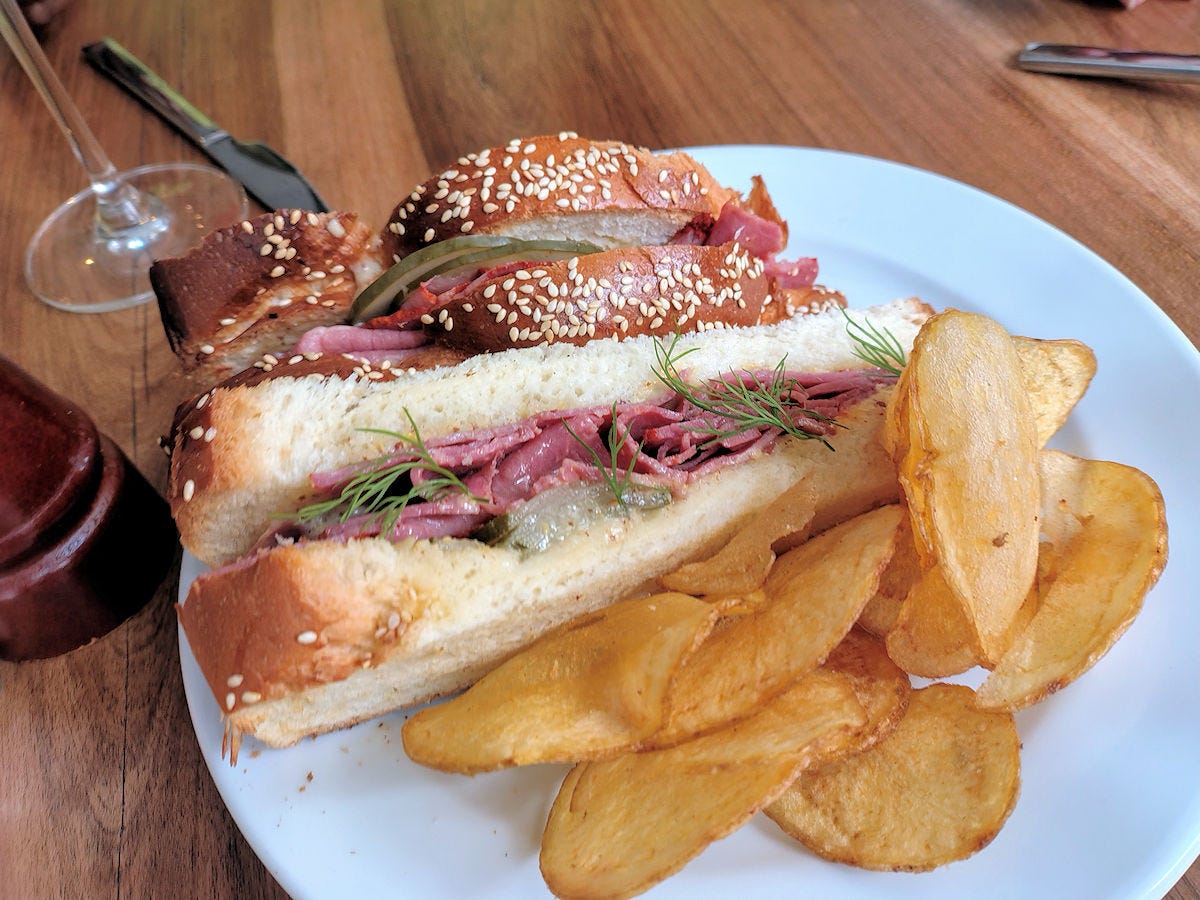 The other big divergence is cultural absorption. New York pastrami retained its identity as a specifically Jewish immigrant food, codified in institutions like Katz’s and inseparable from Lower East Side mythology — you eat it in a particular way, on rye, with mustard, and piled high. Pastrón quietly got folded into the broader Argentine deli and rotisería universe, losing most of its ethnic specificity along the way. Most porteños today think of it simply as a cold cut, something you layer into a tostado or scatter across a pizza, more everyday ingredient than cultural statement. Same grandfather, genuinely different grandchildren.