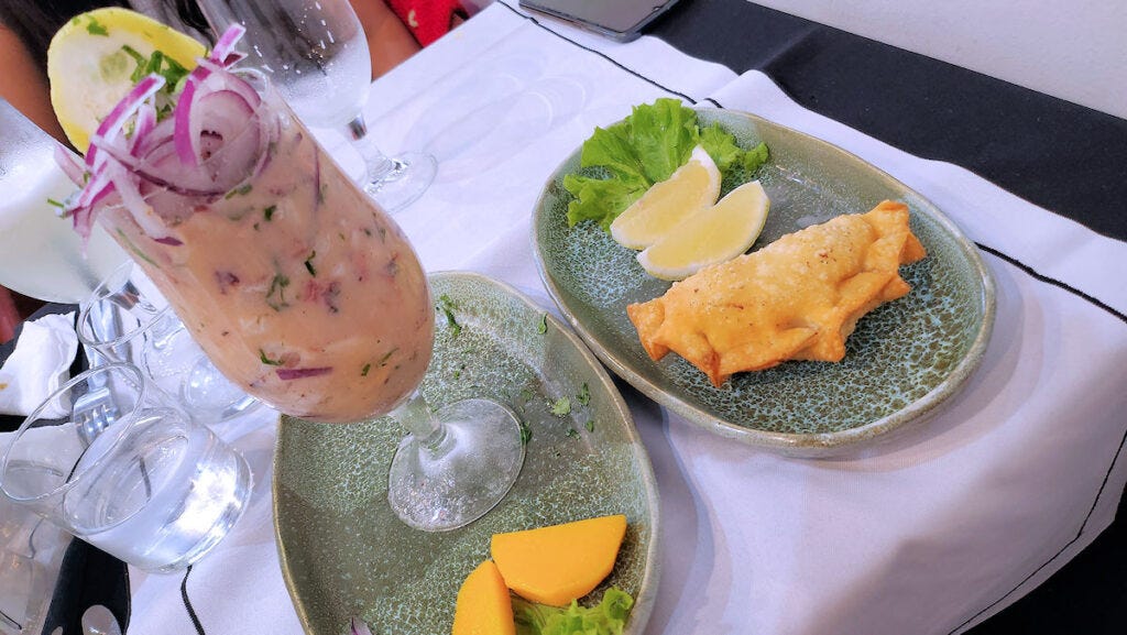 And, his leche de tigre comes in at near the top of my list. It's a bigger portion than he used to serve, enough for a meal with something like one of his spectacular seafood empanadas. Also, easily, the best seafood empanada I've had in town.