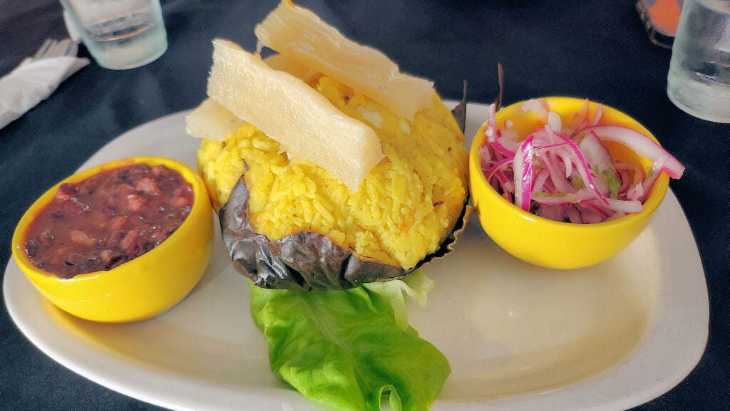 During the pandemic, we ran across an online account of a guy making classic dishes of the Peruvian Amazon and delivering them to people's homes. We tried it a couple of times and enjoyed the dishes. Recently, he made an announcement that he now had a restaurant space, Loretano, Yerbal 2713, in Flores. A friend and I headed out there to check it out.