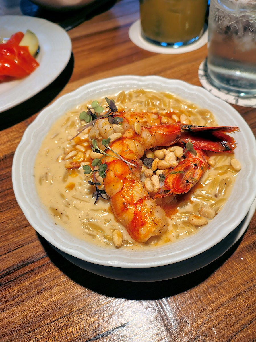 I’m not sure why, but this dish just sort of feels like his signature appetizer. No one said that, but everyone recommends it. It’s a creamy prawn infused orzo pasta spiked with cognac and topped with spot-on grilled spot prawns. We ordered this on all three visits, and twice, absolutely amazing, once, again, way too salty, and immediately replaced with a properly seasoned bowl. Julian wasn’t there, and the waitress returned with a message from whomever was running the kitchen to let me know that what I was tasting wasn’t salt, but the cognac - no, it was salt - and, never do that to a customer. 14600 pesos.