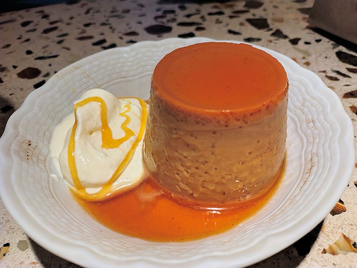 And, a dulce de leche flan. I’m not a huge flan fan, but Henry is, and even I had to admit this was pretty damned good. I still only had one big spoonful and he ate up the rest of it. 12500 pesos.