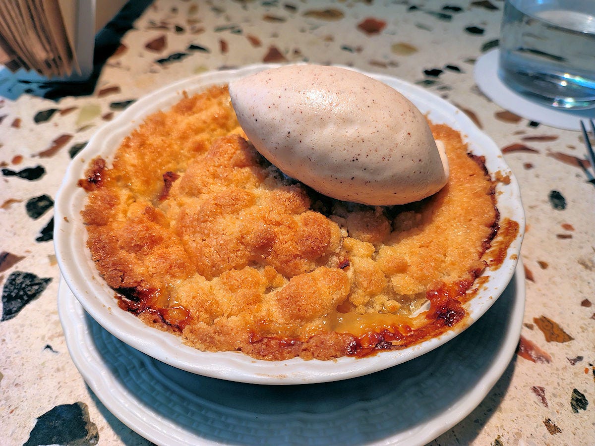 An apple crumble… which I don’t think of as particularly Argentine, and a very generous portion - that’s like cereal bowl sized. Dreamy, and topped with a creamy cinnamon gelato. At 15900 it’s a dessert I’d order again and again.
