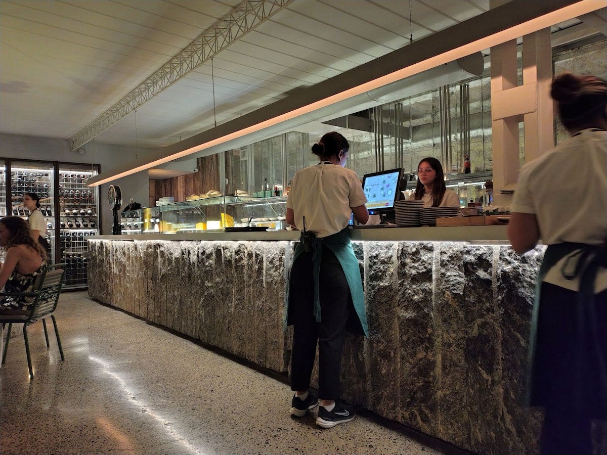 So, what’s the upshot of it all? Love the space. I’m more fond of it during the day with all the natural light from the outside garden and glass wall, plus they keep the music volume lower. Service is impeccable, from the time you walk in until the time you leave. The food, for the most part, fantastic. No, that’s not fair, it’s all fantastic - it’s just now and again, someone back there in the kitchen seems to have a heavy hand on the salt. It’s expensive. For our date night, for example, and at other nice restaurants, we typically order an appetizer or two to share, then two main courses, and a bottle of wine, or cocktails, and run somewhere around 100k with tip. Here, ordering the same quantity, barely shy of 200k. At lunch there’s that great prix fixe, which is very affordable. But a la carte, this is a splurge.