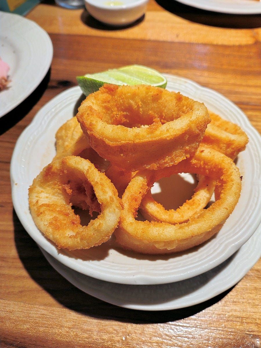 The fried calamari is airy, light, crunchy outside and perfectly tender inside. The first time we tried them, perfect, the second time, so salty we couldn’t eat them, and they were swiftly replaced with another batch that were back to perfect. 18900 pesos - kind of pricey for a small portion, though they are among the best we’ve had in town.