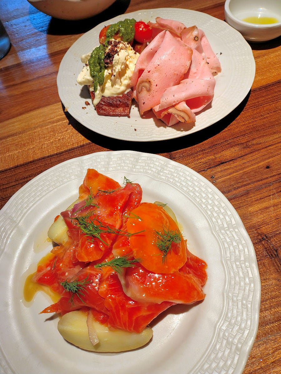 Over the last weeks I’ve made a trio of visits - twice for lunch (once solo, once with The Horde), and once for dinner for our date night. Upfront, each time, Julian sent out additional comped dishes, though we paid for the majority of what we ate.