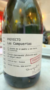 A bottle of wine, of course. From the Durigutti brothers, their Las Compuertas Cordisco 2021. Cordisco is another name for the Montepulciano grape, and this was a fine example of what can be done with it. A little pricier at 32,600 pesos, a little over $20, for our usual choices at lunch, but worth it.