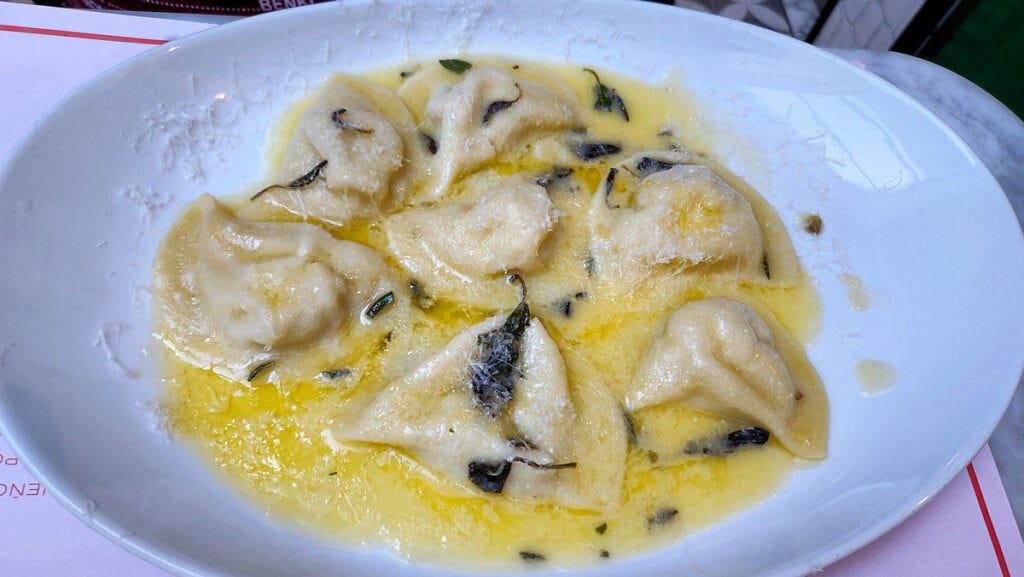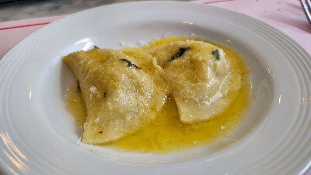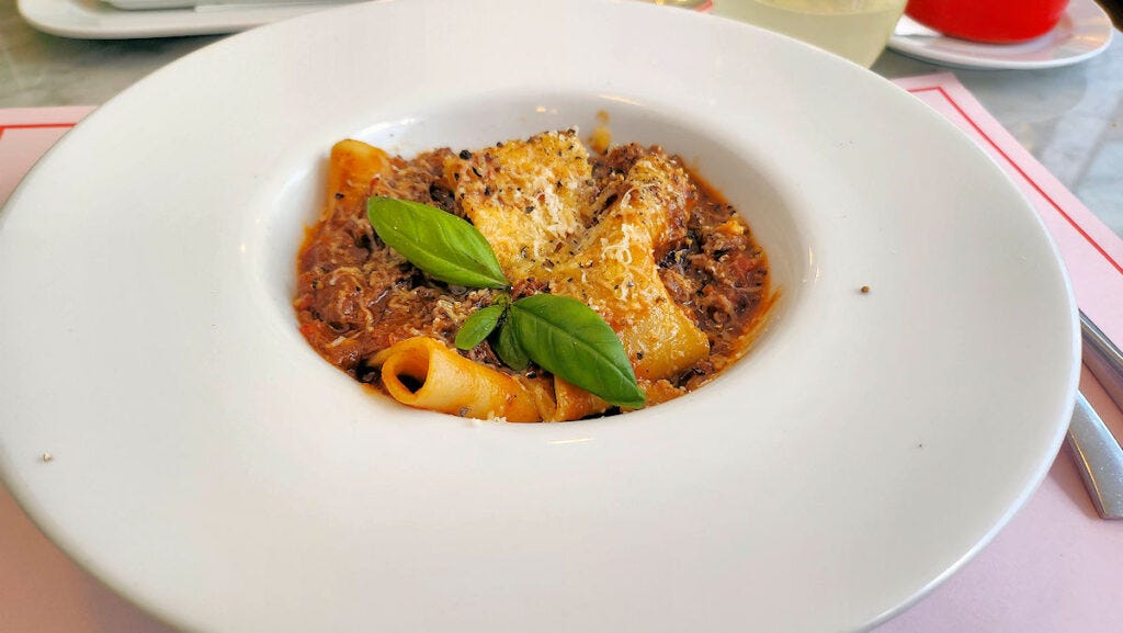 In 1997 Cipriani asked him to take on the reins of their soon to be opened restaurant here in Buenos Aires, and he moved here and fell in love with the place. From there, his career has been primarily in food television, and then a year ago, he had the opportunity to open Girardi and Girardino, Defensa 1328 and 1345, restaurant and focacceria, respectively [both of which closed in April 2025]. Girardi is, I gather, the surname of his business partner's grandmother. I'd heard vague rumblings that there was excellent pasta to be had, and recently I made a solo visit, and, enjoyed it so much that I organized a Horde outing this last week to return and try more.