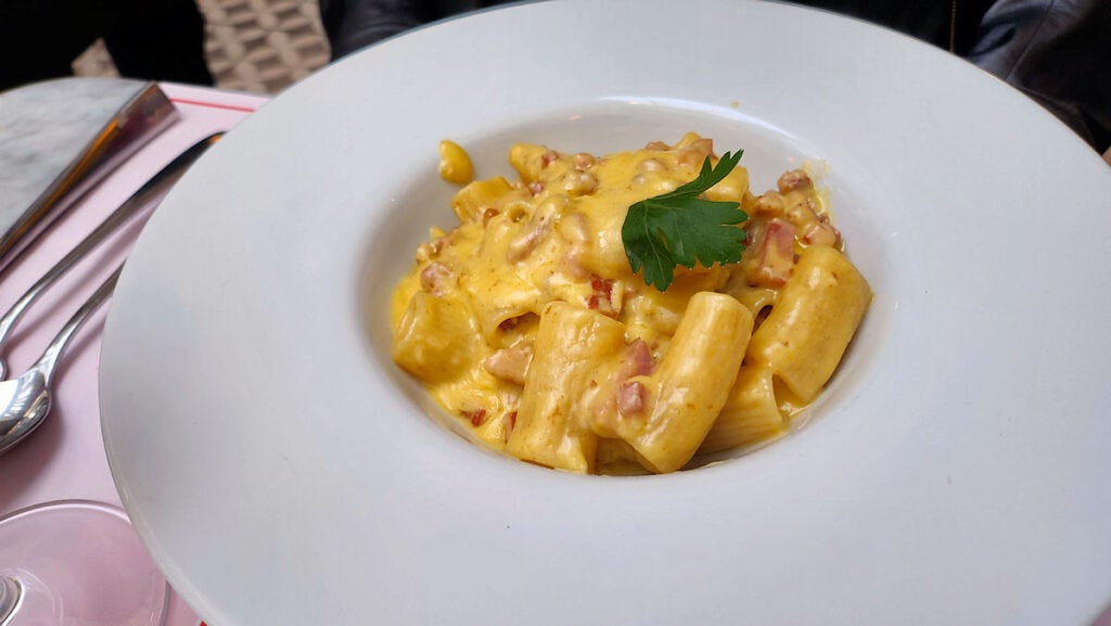Another, the rigatoni alla carbonara - again, needs pepper, but otherwise, perfectly made. 20000 pesos.