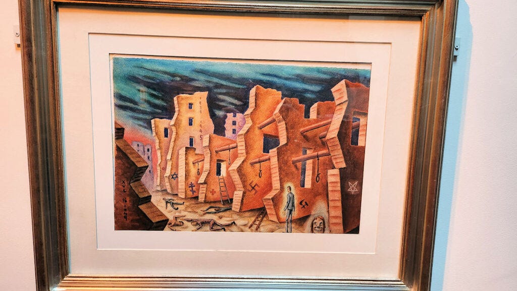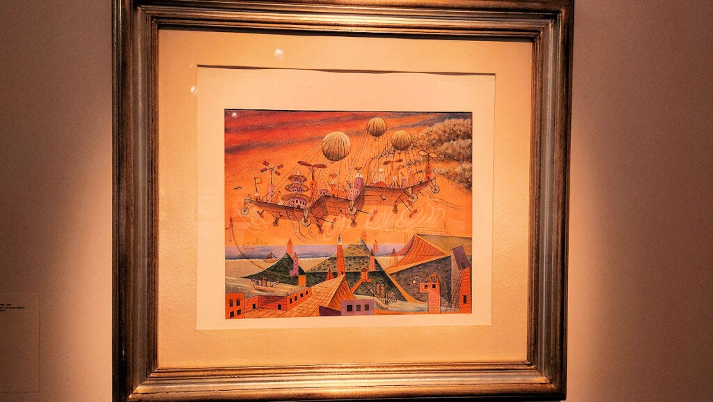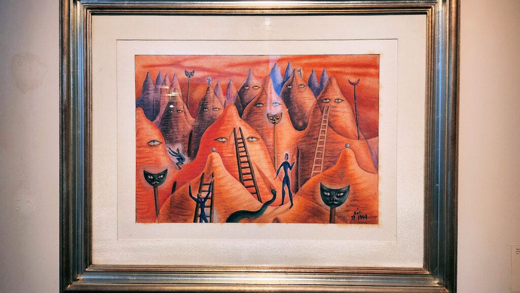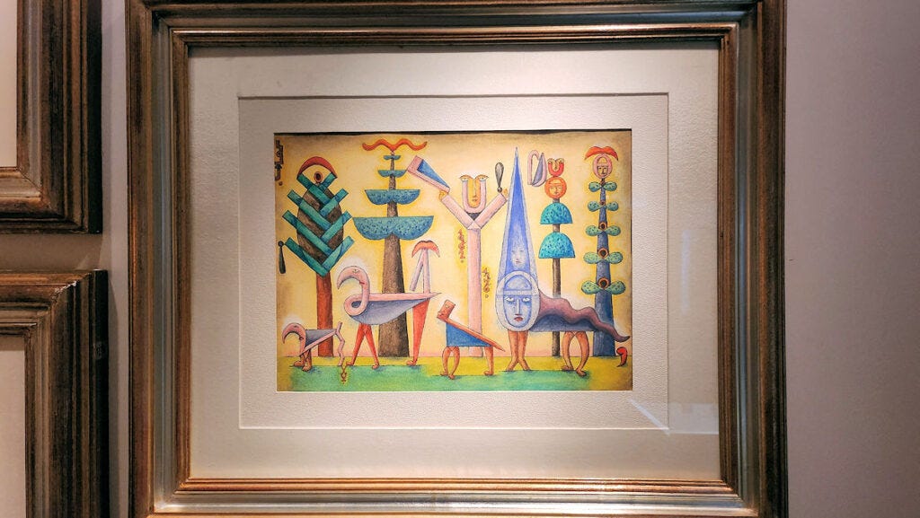 ...and "Flight Town" (Vuel Villa) one of his most well-known pieces, is a painting of a utopian city floating in the sky, blending architecture, fantasy, and mysticism. These works highlight Xul Solar's creativity and his ability to merge spirituality, language, and visionary imagery into his art.
