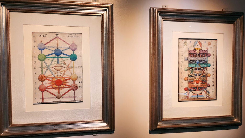 Some of Xul Solar's standout works include a series entitled "Pan Tree" (Árbol Pan), in which he creates a fantastical tree with branches that more or less follow "chakra points", symbolizing the idea that all languages and cultures are connected.