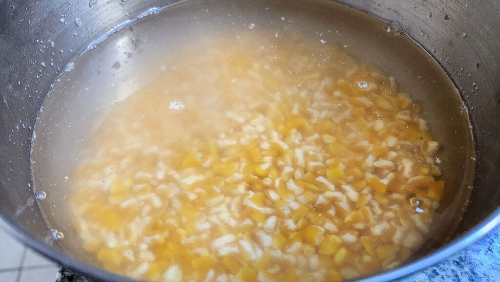 Rinse and then soak the corn overnight in water.