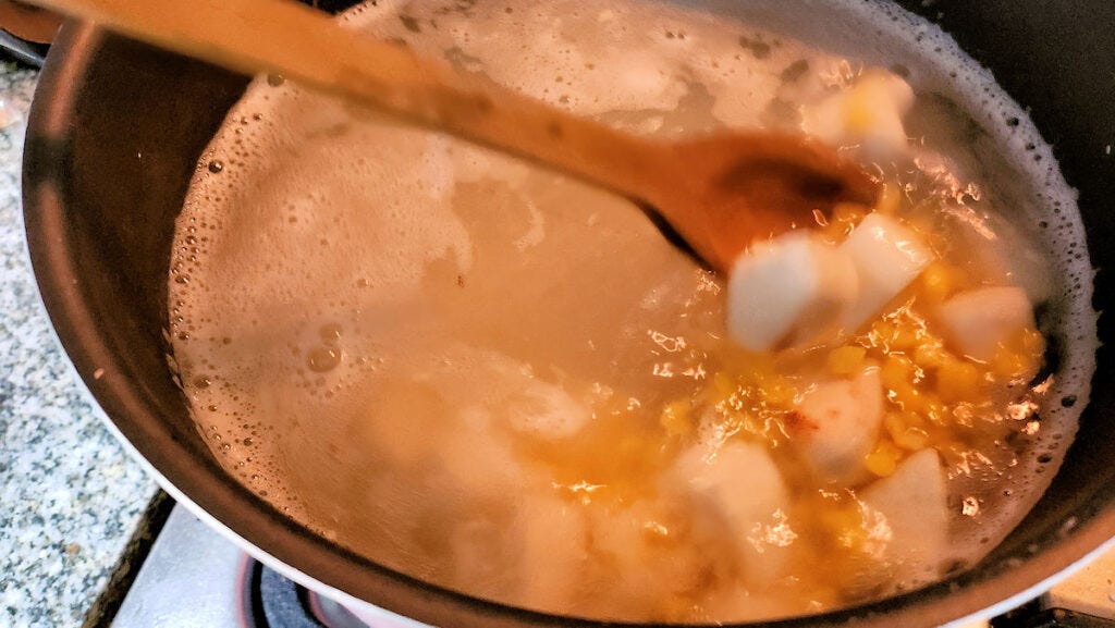 Add the yuca root to the pot, bring it back to a boil for about another 15 minutes.